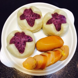 一定要注重早餐营养,尤其有宝宝的家庭,我家小伙儿,奶酪涂抹在紫薯馒头上吃,还挺会吃嘛