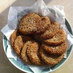 面饼粘上芝麻 不喜欢啥都不沾也行