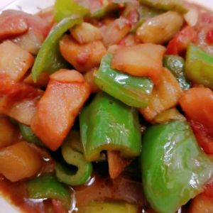 让后放入炒熟的青椒,翻炒几下即可出锅。