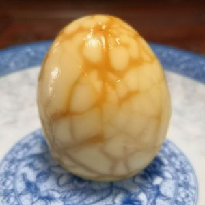 浸泡一夜的茶叶蛋外壳已经被酱油的颜色给浸染了,是很漂亮的棕色