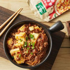 粉丝中加入20克“太太乐”麻婆豆腐调味料和油拌匀待用