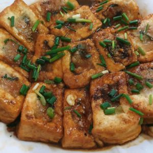 锅放油加热 倒入蒜头煸香 放蚝油 酱油 鸡精 老抽 水 大火烧开放入豆腐 盖好焖五六分钟左右 (不喜欢汤汁太多可放少点水或者加淀粉水收汁)