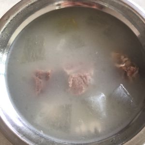 排骨烧开后倒入冬瓜小火慢煮1小时就可以了出锅了,要先尝尝汤的咸淡哦。
