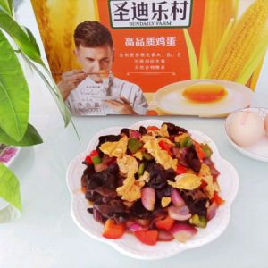 这道菜用“圣迪乐村”的鸡蛋烹饪,鸡蛋的颜色比普通的鸡蛋都要黄,没有一点腥味,可以放心食用。