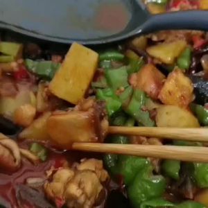 我尝了口肉已经很好吃了,都不舍得在往下了,但目的是大盘鸡,继续吧。