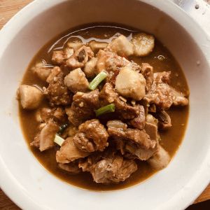芋头先煮好,剥皮,因为我和老公都喜欢吃芋头,就放的芋头,喜欢其它的配菜也可以