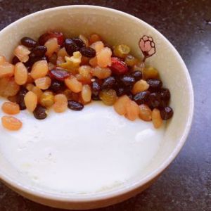晾凉后的牛奶能清楚的看见上面已经结了一层奶皮,在碗边轻轻的开个小口,慢慢的把牛奶倒入别的碗中,把奶皮留在碗底,像这样就可以了