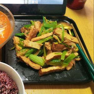 准备食材1.鸡胸肉切丝2.芹菜切段3.香干切条4.洋葱切丝