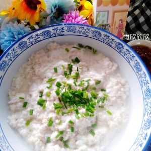 我们把豆花用漏勺从锅里捞在碗中,放入葱花。蘸着蘸水蝶吃,特别的美味。
