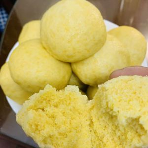 二次醒发,约15分钟后,体积明显变大,拿起来轻飘飘的,可以上笼蒸了。上汽后蒸15分钟。可能用的玉米面新鲜吧,听到门口过道上有孩子说"玉米好香!"