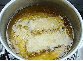锅里放油,油温三成热时,放入脆皮鲜奶坯油炸。(因为是冷冻的,油温不能太热哦)小火慢炸,大约炸2-3分钟,外表金黄时捞出即可,吃的时候沾果酱或浓稠的酸甜果汁,就是什么也不配也很好吃哦。