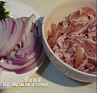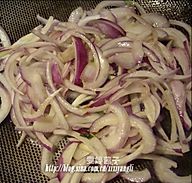 锅内留底油,放入洋葱翻炒片刻,适量加点盐。