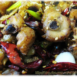倒入鸡块炒匀,调入鸡粉,熟芝麻,再撒点葱段,略炒,出锅
