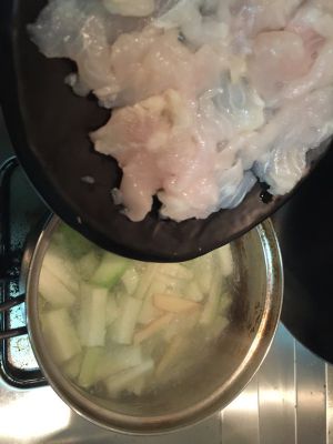 鱼片,我让市场的大叔片好滴,我自己搞就太费劲了。早上用生粉、姜汁、蛋清腌好,放冰箱。晚上回来做就刚刚好