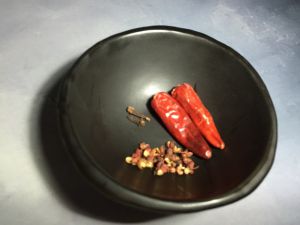 干辣椒、花椒和丁香,丁香是一味奇特的香料,我个人很喜欢用