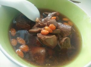 枸杞在快煮好的前半小时放在猪心里。就可以了。