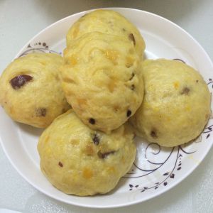 把面团取出来,揉啊揉,把面团里的气体排空,成原来大小,好了,现在能做馒头了,揪块面团,揉圆,成馒头形,依次做好所有面团,放十分钟,二次发酵,这时候就可以烧水了,水开后放入所有馒头,蒸20分钟,关火,闷十分钟,好啦,香香的南瓜红枣馒头就做好啦,开吃吧。
