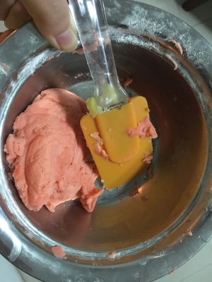 留一小撮原味面团当花心 其他加入食用色素或草莓果味粉拌匀
