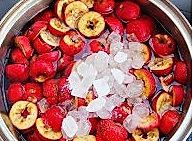 放入不锈钢锅里,加冰糖,加水大火煮开后转中火,要不停的搅拌至山楂很软烂时,加入白糖继续炒。