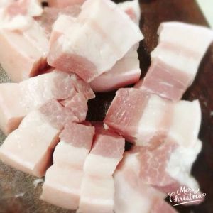 把五花肉在开水中焯一下用直饮水冲洗好备用