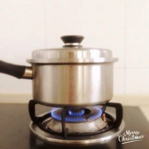 中火开煮(这里需特别备注下,我家的钢锅煮红烧肉不用加水,亲,您按照平时做红烧肉的方法去做哦)