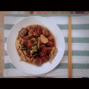 待到汁水收浓,腐竹入味后就行了