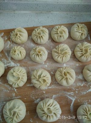 包好后稍微醒会,蒸屉擦油上锅蒸,开后12-15分钟即可