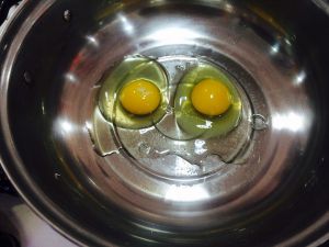 鸡蛋两个用手动打蛋器打散至无水的盆里