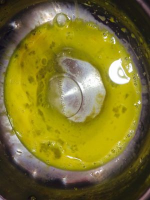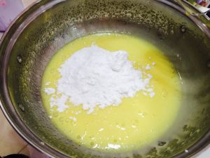 加入色拉油,搅打至均匀乳化(大豆油或者玉米油都可以)