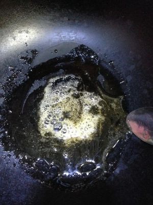 开小火翻炒油炸,要用锅铲勤搅拌