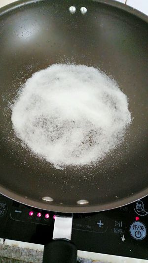 2不粘锅加热倒入适量的食盐,黑胡椒分翻炒1分钟。