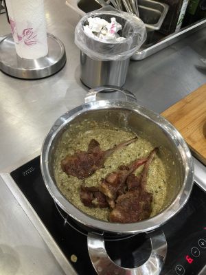 羊排埋入调料堆里,盖锅盖,加热20分钟左右,