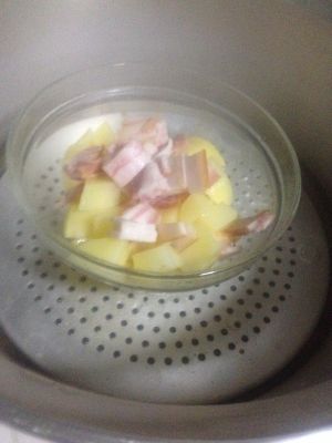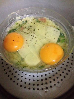 蒸個兩分鐘!五星級西餐的馬鈴薯泥就可以享用了哈!記得蒸的時候注意!蛋黃別蒸全熟唷