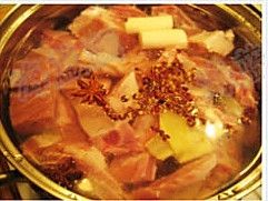 排骨洗净入锅,加冷水,避免中途加水,所以一次加足。