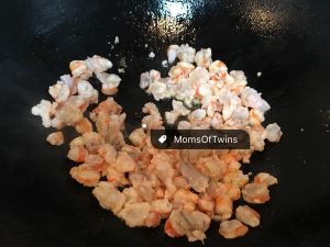 锅中放油,把虾丁放入锅中炒熟撑出待用。