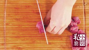 ▲烤肉串要用羊的后腿肉,切成4厘米见方的小块。