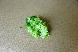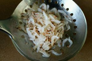 泡洗干净的虾皮沥干水分(1岁以内宝宝可以用刀剁碎成虾末,1岁半以上宝宝可以直接用虾皮)。