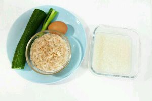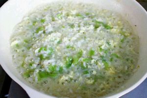 食材准备:丝瓜半根、虾皮少许(提前在清水里浸泡2遍)、鸡蛋1个、香葱少许、大米粥一碗。