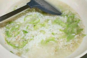 搅拌均匀,焖煮5分钟至软烂(如果粥太稠,防止糊锅可以加少许热水,一定不要加凉水)。