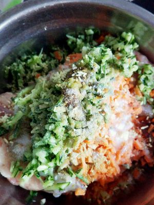 放入黄瓜胡萝卜~十三香~蚝油~盐~鸡精