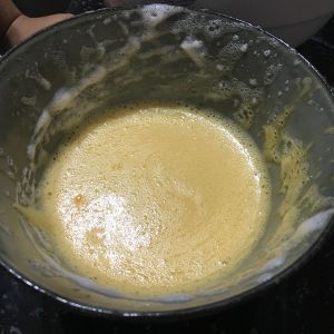 将蛋清糊和蛋黄糊混合搅拌均匀
