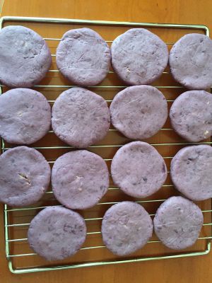 1.将紫薯蒸熟去皮,用手(记得带一次性手套,不然满手都是)或者勺子将紫薯捣烂成泥