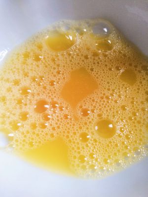 鸡蛋加几滴水和少量盐,打出泡。在锅中放入适量橄榄油,将鸡蛋炒碎盛出备用
