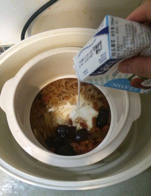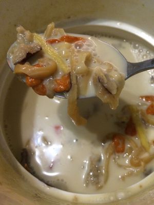 出锅前3分钟放入椰浆再放几粒黄冰糖