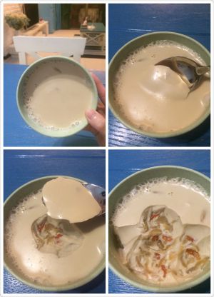 甜美的花胶椰浆奶冻就出炉了。如果肠胃不适者现在就可以吃完了,不用放到冰箱的呢。