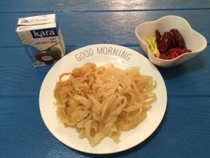 食材准备;椰浆,花胶3个切丝,姜丝、枸杞、红枣切片去核待用