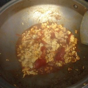 等西红柿熟透了再放入炒好的鸭蛋,搅拌均匀