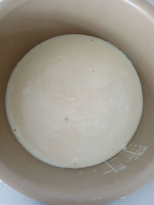 搅匀之后放入电饭煲内胆里,放入之后顿顿气泡,放入之前提前预热内胆,然后底部刷入点食用油,这样不容易粘底哦