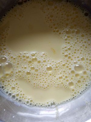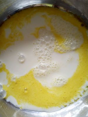 搅好的蛋黄,里面加入一袋牛奶