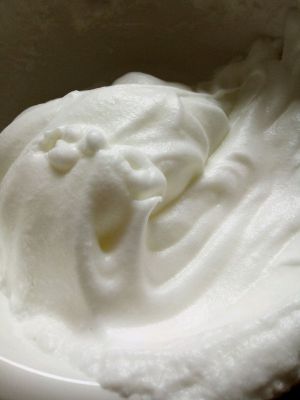 蛋清打散,打到有泡泡的时候加入两勺白糖继续打发